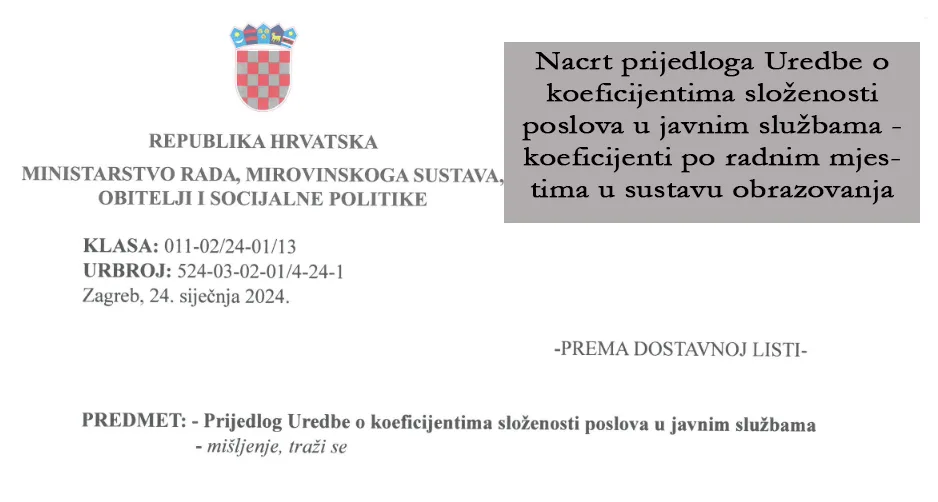 25.01.2024. Kolegice i kolege, 22. siječnja smo, odmah po završetku sastanka, na našim sindikalnim stranicama prenijeli koeficijente koji su nam predočeni od strane predstavnika Vlade. Vaši su...